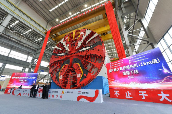 當日,一臺最大開挖直徑達16.07米的超大直徑盾構機在中國鐵建重工集團長沙第一產業園下線。這臺盾構機整機長150米,總重量4300噸,這是我國迄今研制的最大直徑盾構機。